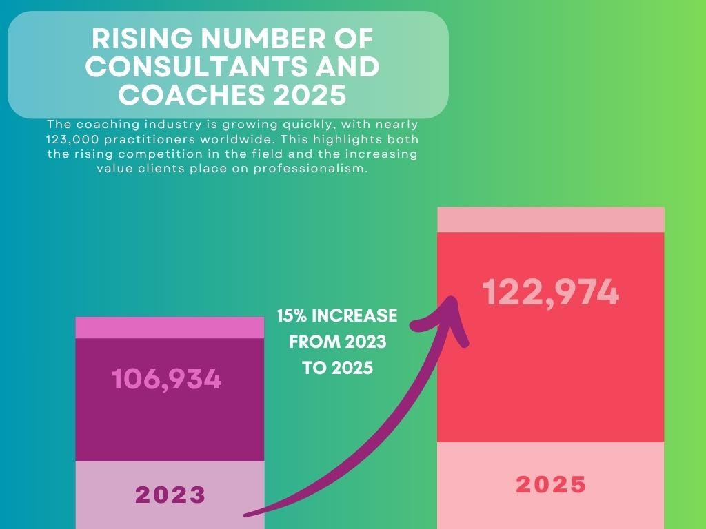 The coaching industry has been expanding rapidly, with nearly 123,000 practitioners worldwide — a 15% increase since 2023! At the same time, in 2020, around 74% of coaches hold an International Coaching Federation (ICF) credential, underscoring the growing competition in the field and how much value clients place on professionalism.