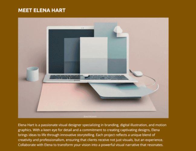 Freelancers and creators using Wix AI or Framer AI can build personalized websites with stunning visuals, case studies, and light e-commerce features, all without coding. For instance, the example below includes a portfolio section and client testimonials, which help build credibility and showcase your work effectively.
