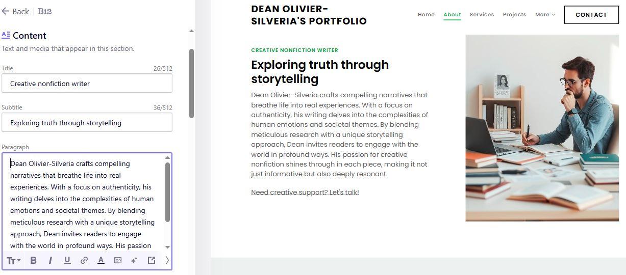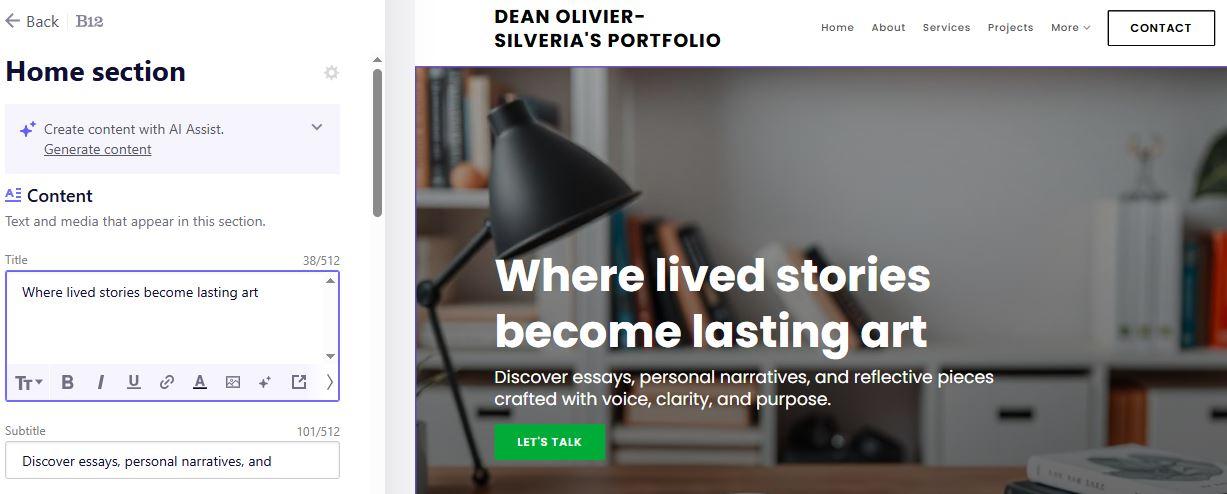 AI tools make personal branding accessible for everyone, whether you’re a freelancer, creator, or consultant. It's all about choosing the best AI website builder that fits your goals, budget, and design preferences. For a combination of AI speed, automation, and built-in business features, B12 stands out. You can explore it, fine-tune your AI-generated website, and see how your dream website comes together effortlessly.