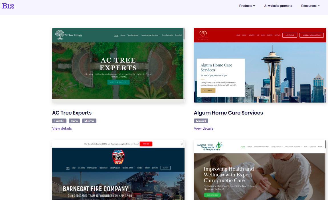 You can explore examples in B12’s prompt website gallery to see how the AI turns business descriptions into polished sites. Small and mid-sized businesses can also browse the industry website library for inspiration from sites tailored to their sector.