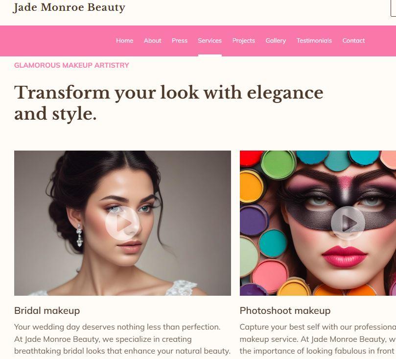 Jade Monroe Beauty’s website features a refined serif for the logo and a soft sans-serif for body text, giving it a clean and luxurious look. This font pairing complements soft imagery and balanced spacing, reinforcing a sense of grace and trust.